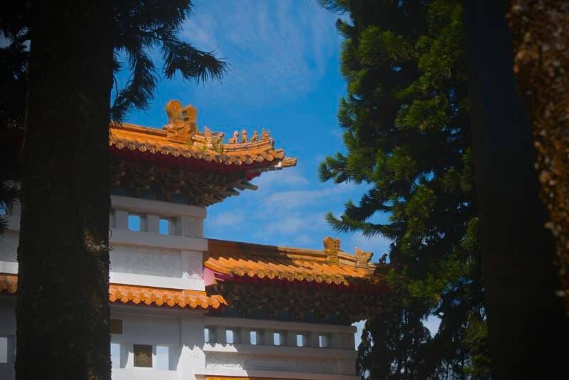 We caught it just in time for golden hour, when the sunlight made the colours glow. Make sure to go all the way up to see the stone gate and feed the koi fish (yes, you can buy a packet of koi food for 10 TWD).
