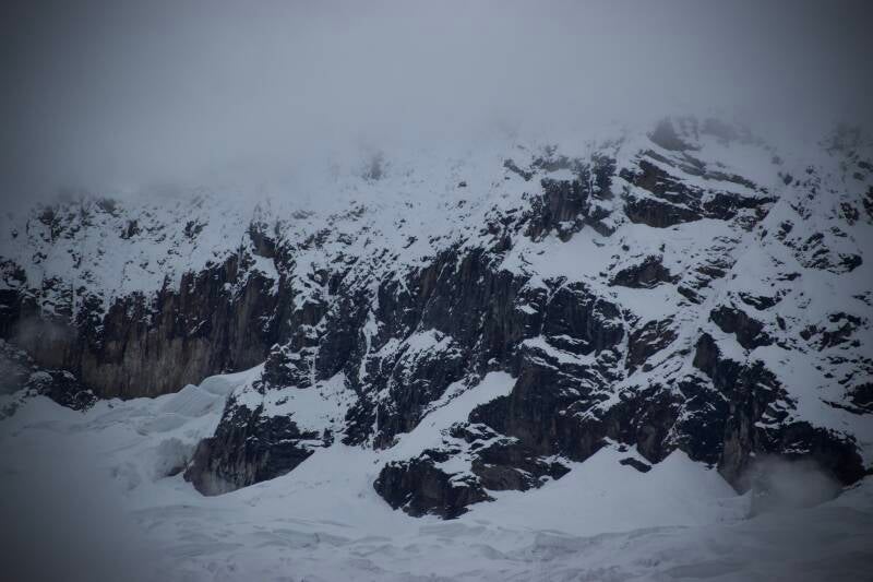 By midday, the rain got worse, and we had to stop frequently to take shelter. It was extremely in the cold and wet conditions, and reaching the pass at 1:00 PM was more of a relief than a victory. However, in a rare stroke of luck, we got 30 minutes of sunshine, enough time to finally see the peaks and glaciers. The descent was steep and rough. We finally reached Taullipampa at 4:30 PM, cold and wet. This was the coldest campsite so far due to the altitude.